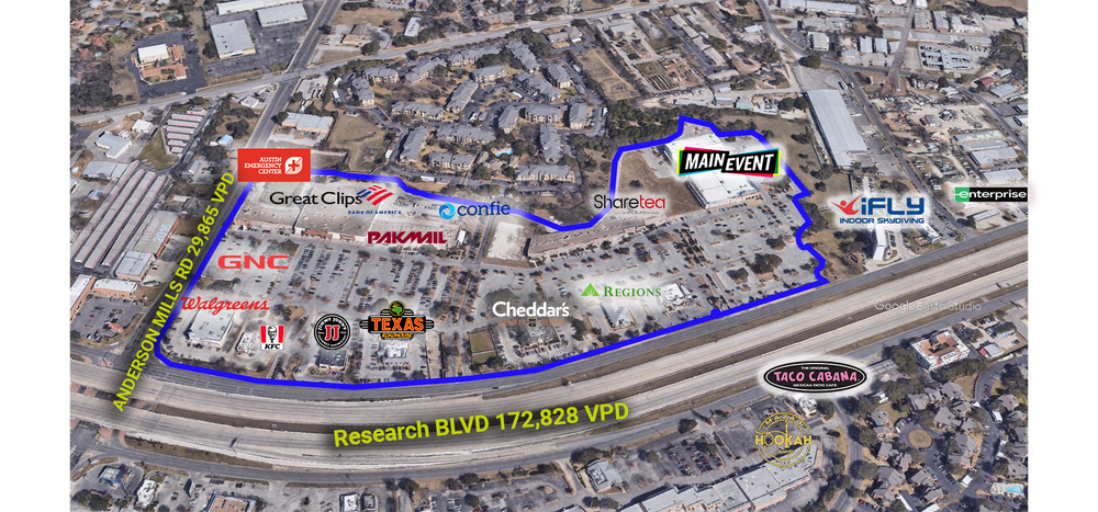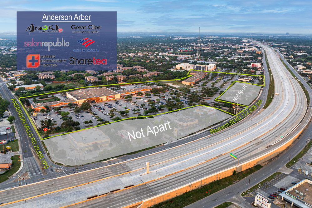 Anderson Arbor is a high-performing neighborhood shopping center located at Highway 183 North and Anderson Mill Road, serving one of the area’s fastest-growing, highest-income residential communities. Its strong mix of restaurant and service-oriented tenants, combined with nearby major employers, drives consistent daytime and evening traffic.