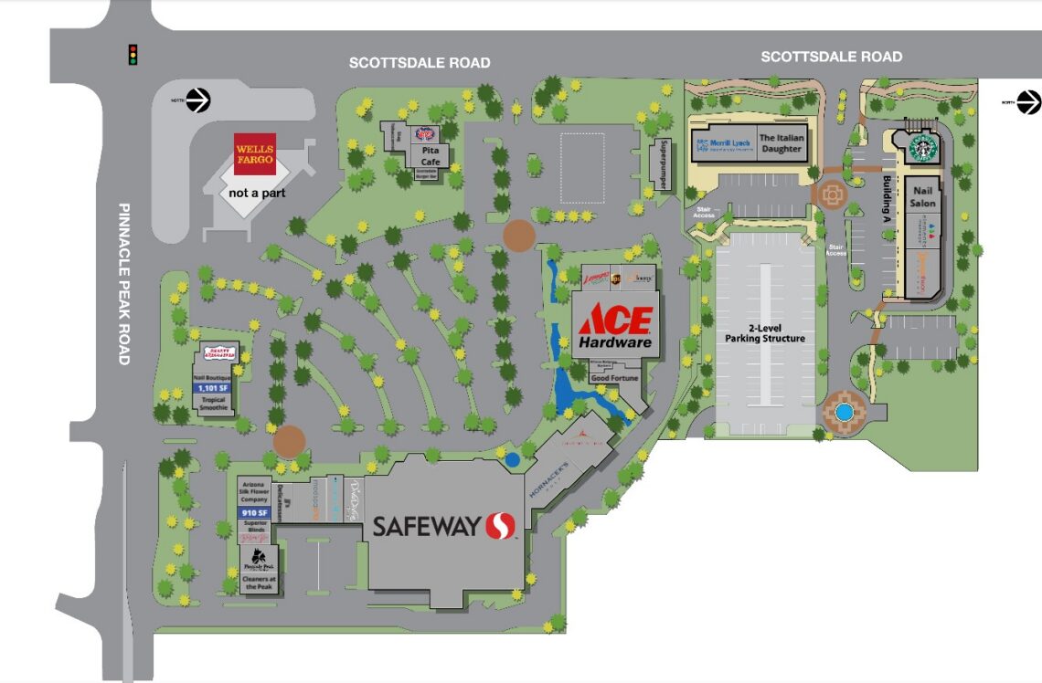 Discover an exceptional leasing opportunity at The Pinnacle of Scottsdale, a premier destination supporting the community with a diverse mix of tenants and services. Anchored by esteemed brands like Safeway, Ace Hardware, Starbucks, Hornacek’s House of Golf, Jalapeno Inferno, Italian Daughter, and Orange Theory. The Pinnacle of Scottsdale provides a vibrant environment for businesses to thrive.