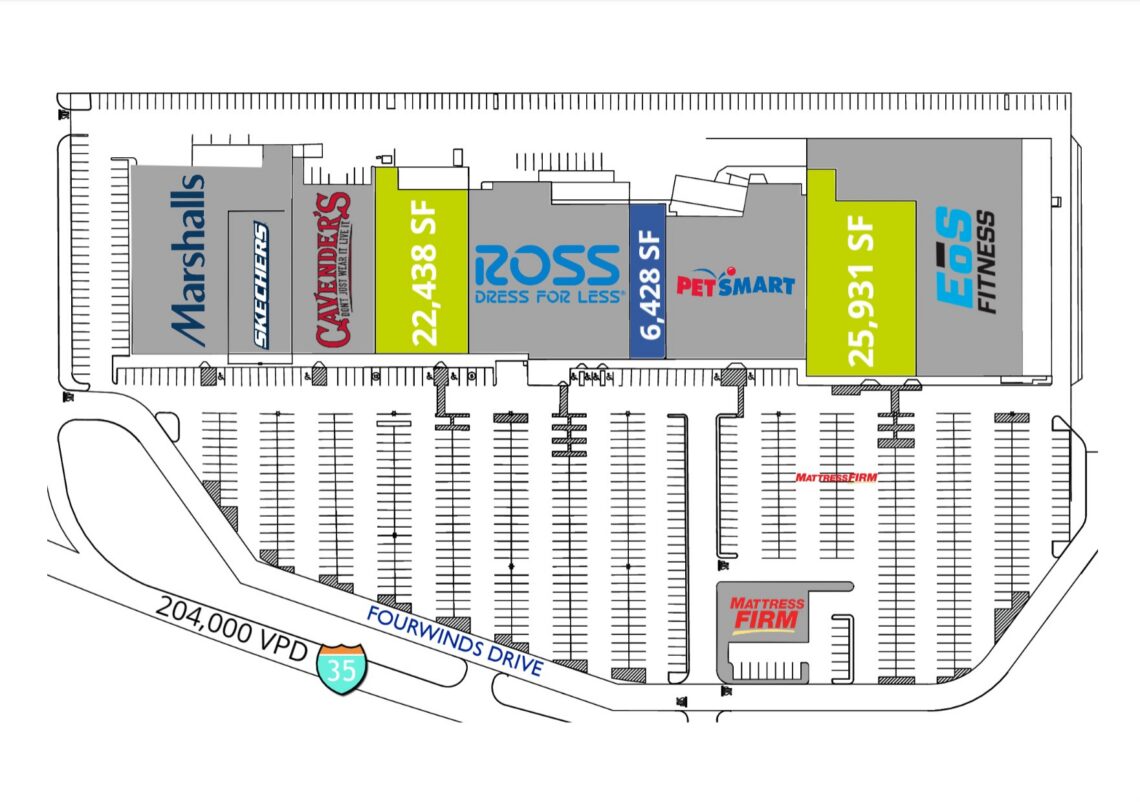 Ideal for retail, dining, and service businesses alike, Windsor Park Center provides ample opportunity for tenants to thrive in a vibrant and bustling environment. The center has major tenants such as Ross Dress for Less, Cavender’s, and Petsmart, providing additional draw and foot traffic for all businesses within Windsor Park Center. Whether it’s establishing a flagship store, launching a new dining concept, or offering essential services, the center caters to a diverse range of business needs.